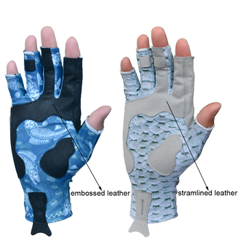 BTI-11B-2166 네 색상 선택 UV 보호 남성과 여성 핑거리스 낚시 장갑 양각/stramlined 가죽 (B07